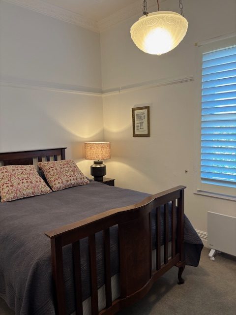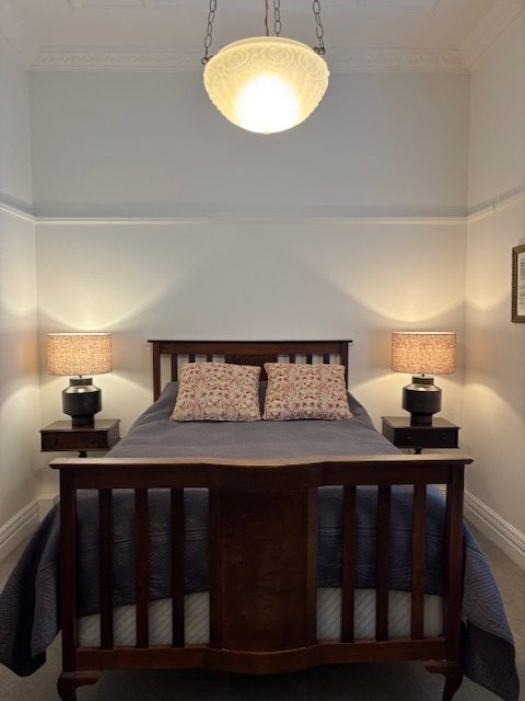 The soothing motif in the Forster Room provides a serene and regal sanctuary, steeped in vintage charm and quiet luxury, complemented by delicate crimson accents that catch the light and add a subtle, glowing warmth to the space.